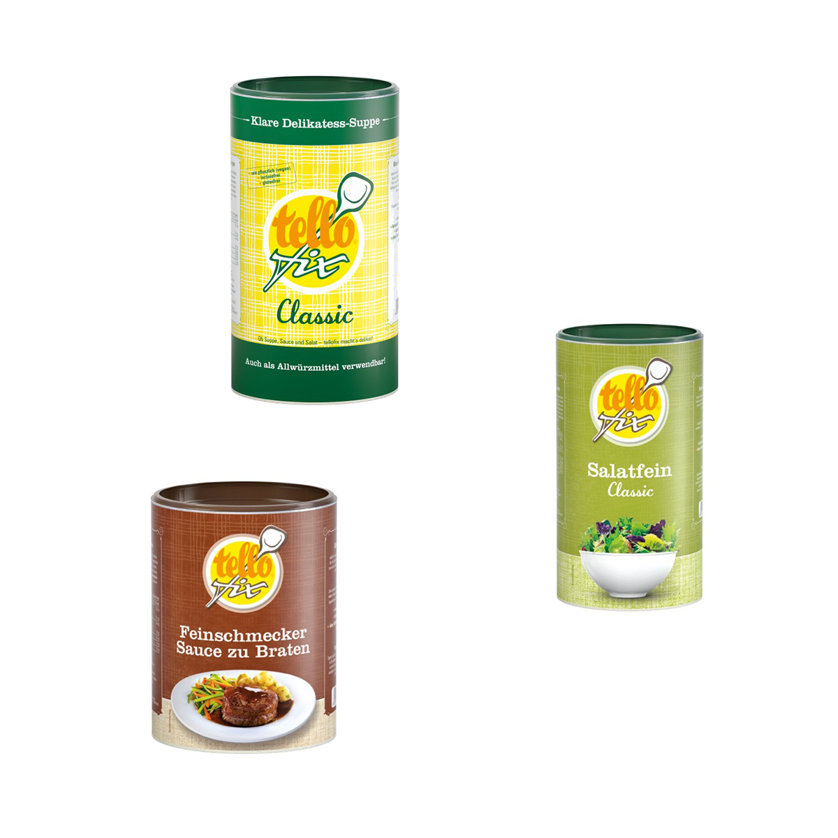 Mit den Tello Fix Produkten sparen Sie Zeit und sorgen gleichzeitig für geschmackvolle Gerichte, die Ihre Familie und Gäste begeistern werden!